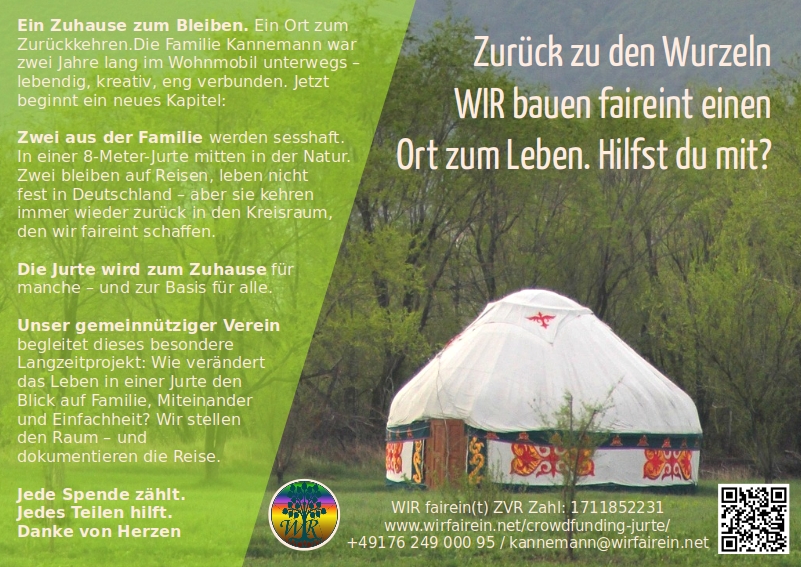 Unser Verein stellt dafür die Jurte – und begleitet die Familie im Rahmen eines mehrjährigen Forschungsprojekts zum Leben in alternativen Wohnformen.